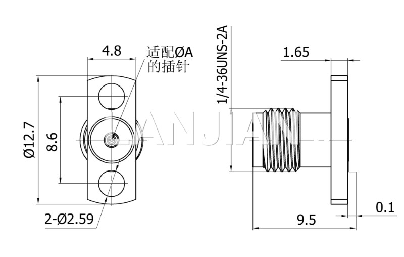 商品描述:2.92mm straight jack connector,40GHz